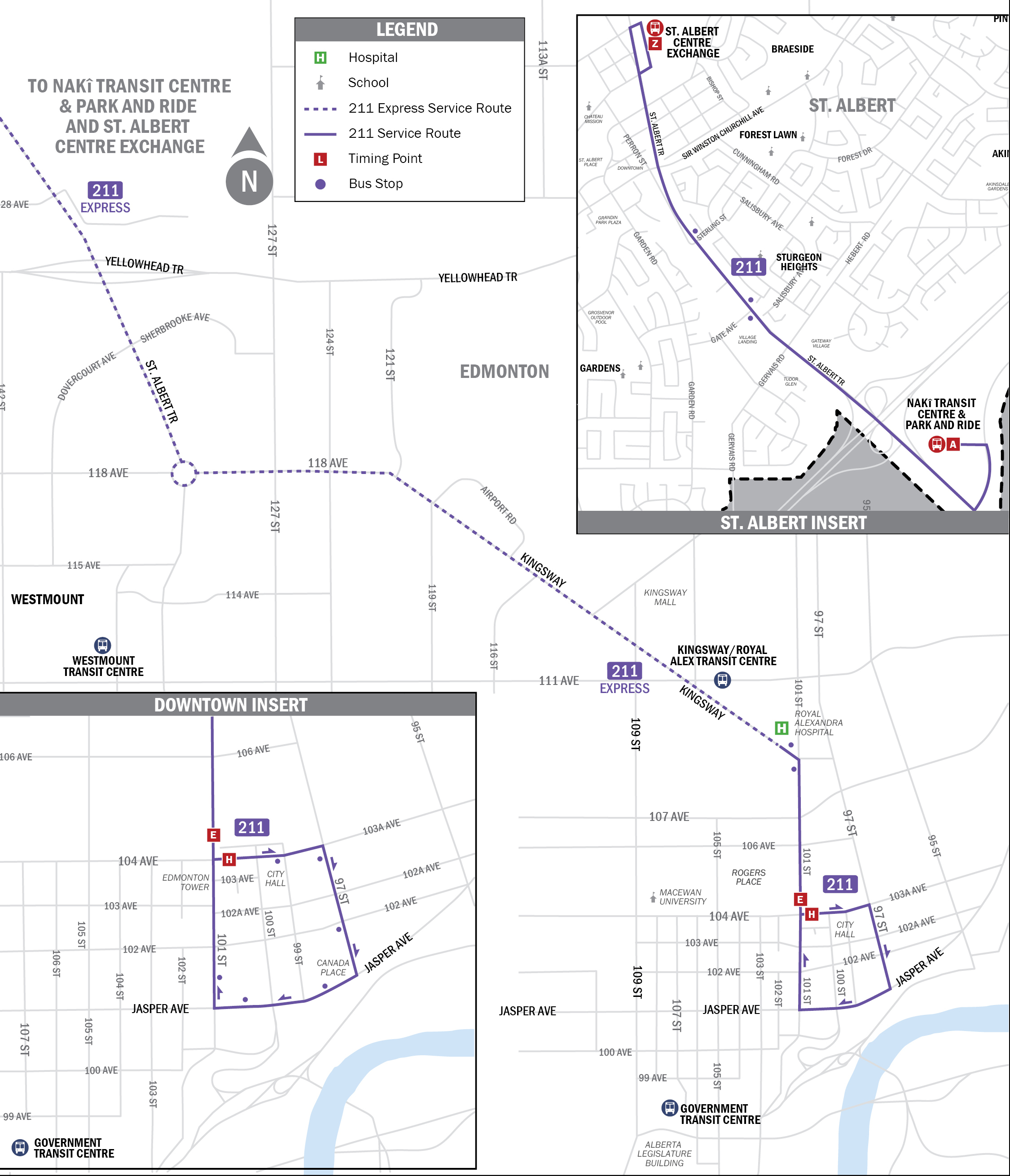 | St. Albert Centre Exchange Departure | Nakî Transit Centre Departure | Edmonton Tower 103a Ave / 101 St Eastbound | EPCOR Tower 101 St / 103A Ave Northbound |