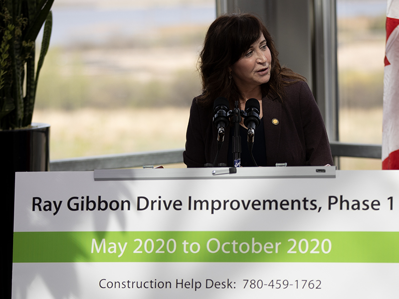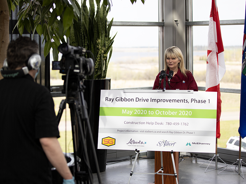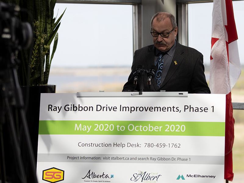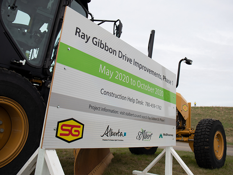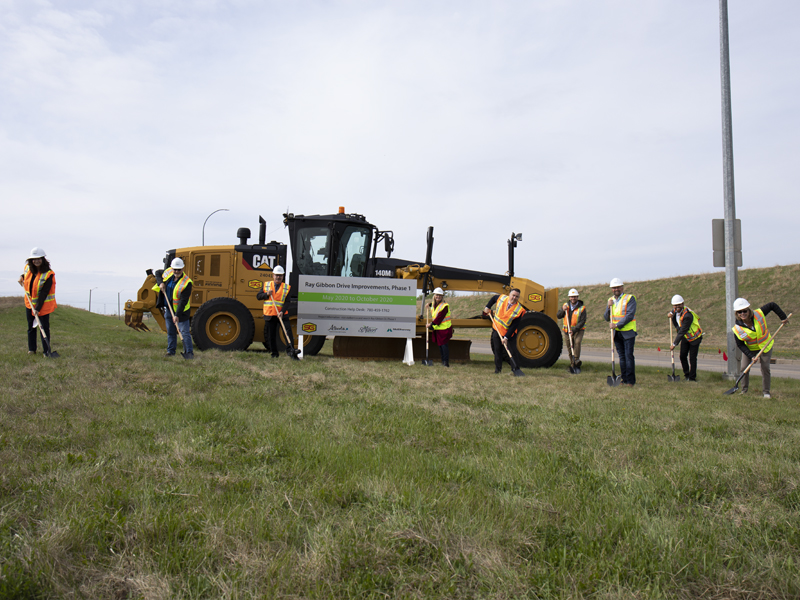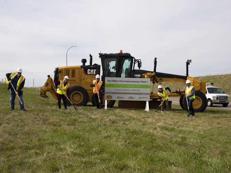 On May 20, 2020 the Minister of Transportation, the Honourable Ric McIver, and St. Albert Mayor Cathy Heron joined invited guests at a ground-breaking ceremony. The event marked the ceremonial start of construction for the first phase of the Ray Gibbon Drive expansion project, which started the week of June 1, 2020.