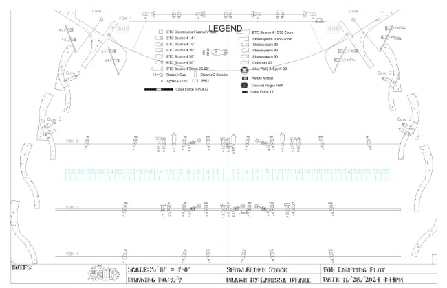 If you require drawings of the theatre, download the ARDEN.DWF to get the following layouts or download the PDF files of the views you need. When printing PDF files, ensure that all image corrections are disabled to ensure the drawing prints to scale correctly. All PDFs are 8-1/2" x 11" unless otherwise noted.